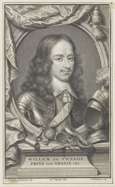 Frans de Bakker etched this portrait of Willem II, Prince of Orange. It’s hard to look at this depiction of power without considering the legacy of colonialism and the House of Orange's role in shaping Dutch identity. Willem II, adorned in armor, represents a very specific kind of masculinity, one deeply intertwined with military prowess and aristocratic privilege. How does this image function as a tool for constructing and reinforcing power? What does it mean to portray a leader in a way that emphasizes his strength and authority? Consider the communities impacted by Dutch expansion during this era. This portrait of Willem II is a reminder of the complexities inherent in historical representation. While intended as a celebration of leadership, it invites us to reflect on the broader impact of that leadership, and the ways in which historical narratives can both reveal and conceal.
