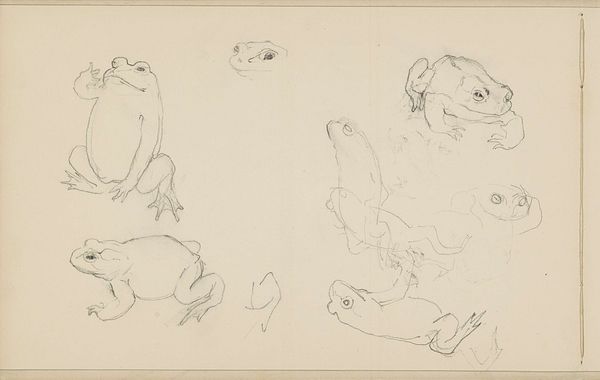 Editor: This is John Singer Sargent's "Four Sketches of Swans." It's a small drawing, just a bit bigger than a postcard, but the swans feel monumental. What do you see in this study? Curator: I see a subtle rebellion against societal expectations. Sargent, often celebrated for portraiture of the elite, here focuses on the swan, a symbol often associated with grace and femininity. However, these sketches capture the bird in dynamic, less idealized poses. Is he challenging the passive role often assigned to women in art? Editor: That's a fascinating take. So, you see these as maybe more than just sketches? Curator: Exactly. They are Sargent exploring the tension between traditional symbolism and modern, more liberated representation. He gives the swans agency, disrupting the historical constraints placed on the female form. It makes you wonder, doesn't it? Editor: It does! I’ll never look at a swan the same way again.