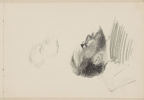 Curator: Before us, we have Anton Abraham van Anrooy's "Portretstudies voor het (onvoltooide) schilderij van de Nederlandse rechtbank in Londen, juni 1942: Mr D.J. Sannes." It's a pencil drawing, likely from between 1942 and 1946, and resides here at the Rijksmuseum. Editor: It strikes me as quite stark, almost melancholic, with its muted tones and the subject's introspective gaze. The drawing seems unfinished. Curator: Indeed. The unfinished nature highlights the labor involved in portraiture. Anrooy was commissioned to paint the Dutch court in exile in London, a project left incomplete. These studies represent the individual efforts and materials needed to undertake this type of statecraft commission. Editor: And how those deliberate, short pencil strokes coalesce. It creates an impression of solidity while maintaining an almost ghostly lightness of being. The composition also interests me: the negative space dominates. The subject is very much in one corner. What significance do you attribute to the way he has framed his composition? Curator: I am inclined to connect that with the historical setting and Mr. Sannes’ position within it. Van Anrooy likely made many studies, emphasizing process over outcome, given that only these individual studies of officials are now available for public viewing, unlike the proposed full courtroom rendering of the figures enacting authority and civic stability. The final purpose never fully comes to fruition because of historical instability and uncertainty, as the study gives space to that unfulfilled purpose and function, almost breathing space for the unfinished agenda. Editor: An apt connection, although I still perceive a quiet strength within the portrait. Despite the clear absence of final marks, there is something commanding within the subject's defined profile. The pencil work gives a sense of clarity about who he is. It stands by itself well, which emphasizes the effectiveness of realistic, traditional, artistic methods. The piece communicates clearly regardless of context. Curator: Both qualities intertwine – the drawing is evidence of process and work which are linked directly to this official's role within the specific context of Dutch governance in London during that period. It becomes impossible to truly divorce them without the drawing losing vital associations. Editor: I appreciate having explored how form and purpose unite within this drawing. Curator: A revealing glimpse into both artistic intention and social-historical underpinnings indeed.