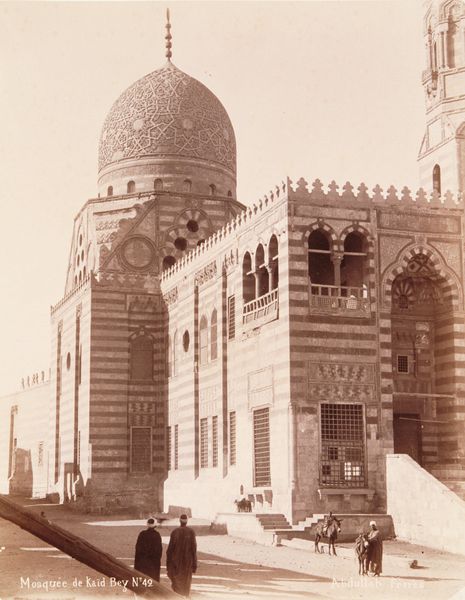 Charles Clifford created this photograph of the Paviljoen aan de Leeuwenhof in the Alhambra. The symmetry and ordered complexity immediately strikes the eye. Columns and arches create a series of framed spaces, each adorned with intricate geometric patterns, characteristic of Islamic art. Clifford’s composition utilizes the architectural elements to explore contrasts between light and shadow and detailed ornamentation. The photograph's success lies in how it captures the essence of the Alhambra’s design principles. It conveys the mathematical precision, combined with an aesthetic sense that strives for beauty through harmonious repetition. Consider how Clifford frames the architectural space, capturing the play of light on the intricate stucco work. It reflects a broader engagement with capturing the essence and structure of cultural landmarks through photographic means. The photograph creates a sense of timelessness, inviting ongoing contemplation.