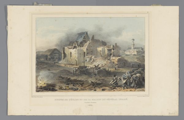Auguste Raffet made this lithograph titled 'Ruins in the Basse' in 1832. It depicts a scene of devastation, with a lone figure carrying salvaged materials through the rubble. Made in France, this work reflects the tumultuous period following the Napoleonic era. The image creates meaning through visual codes of destruction and resilience. Note the stark contrast between the ruined buildings and the figure's determined stride. The ruins speak to political instability of the time. France was undergoing rapid social and political change, with power shifting between monarchists and republicans. The institutions of art were also in flux, with artists seeking new ways to represent the changing world around them. The image invites reflection on themes of survival, reconstruction, and the enduring human spirit amidst adversity. As historians, we can delve deeper into the social conditions that shaped artistic production in 19th-century France by looking through archives and primary source documents to further enrich our understanding of the art and its context.