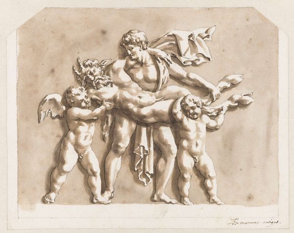 Editor: So, here we have an intriguing drawing from the 17th century, titled "Three male nudes from the Battle of Cascina." It's unsigned, simply attributed to 'Anonymous', done in pencil, and currently held at the SMK in Copenhagen. What I find most striking is the intensity and dynamic poses, even though it’s just a sketch. What can you tell me about the significance of this piece? Curator: Well, this drawing gives us insight into the artistic process of the time. It wasn't just about producing finished works; the preparatory sketches held value, revealing how artists studied anatomy and planned compositions, especially for large projects with political resonance. These ‘academic’ studies reflect not just the artist’s training but also the broader societal function of art as a tool for conveying power and idealizing the human form. Notice how the poses are somewhat theatrical. Why do you think that is? Editor: Perhaps to showcase the artist's skill or create a sense of drama appropriate for depicting a battle? Was the 'Battle of Cascina' a particularly important subject? Curator: Absolutely. The Battle of Cascina was intended to be depicted in the Palazzo Vecchio in Florence, and the commission itself—given to both Michelangelo and Leonardo da Vinci—was heavily laden with political implications for the Florentine Republic. These drawings become a sort of echo of that original civic aspiration. Think about the message these nudes would convey in a public space back then. Editor: Strength, civic duty, and perhaps an ideal of the male citizen soldier? Curator: Precisely. And consider the institutions that preserved these sketches: academies, private collections. They contributed to the canonization of artistic ideals and the formation of taste. Did these drawings only stay inside academies? Editor: Probably not exclusively. They would have circulated amongst artists and collectors. So a work like this sketch shows art working within very specific institutions to promote socio-political agendas. That makes sense. Thank you for making this insightful connection. Curator: Indeed! And reflecting on that connection reminds me how deeply intertwined art is with the society that produces it, both past and present.