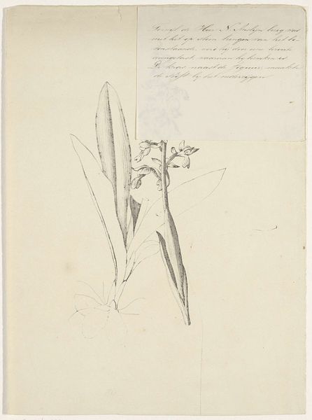 Editor: So, here we have "Studies van papaver en jasmijn," or Studies of Poppy and Jasmine, a pencil drawing on paper by Elias van Nijmegen, estimated from 1677 to 1755. It feels like a preliminary sketch, almost scientific, but also quite delicate. What catches your eye when you look at it? Curator: It’s interesting to see this drawing in the context of the Dutch Golden Age. Flower paintings were hugely popular, practically a genre of their own, driven by both scientific curiosity and the market for decorative art. I wonder, how does this botanical study relate to the larger trend of flower paintings at the time? Editor: It's definitely less opulent than a typical Dutch still life. There aren’t any vibrant colours or signs of decay that baroque paintings might usually emphasize. It’s quite stark actually. Curator: Precisely. Its starkness offers a clue, I think. Given the flourishing horticultural market, a precise and detailed sketch like this probably served as a record, a preliminary design. Perhaps it even functioned as a study for a larger, more elaborate work meant for a wealthy patron’s home. Did botanical studies function in the creation and subsequent popularization of the market? Editor: So, almost like a prototype? Or maybe even something instructional, aimed at other artists trying to emulate Van Nijmegen? Curator: It's certainly possible. We often overlook the social networks and dissemination of knowledge that were active even then. Was this a record of scientific observations, meant for broader circulation among a community interested in botany? The fact it looks both Romantic and Baroque really puts its social context into perspective. Editor: It is easy to overlook how commercial artistic enterprise was, and your insight regarding how these botanicals reflect societal context is very helpful! Curator: Agreed. Looking at the drawing through a historical lens allows us to understand the purpose and intent behind it, beyond just its aesthetic qualities.