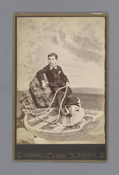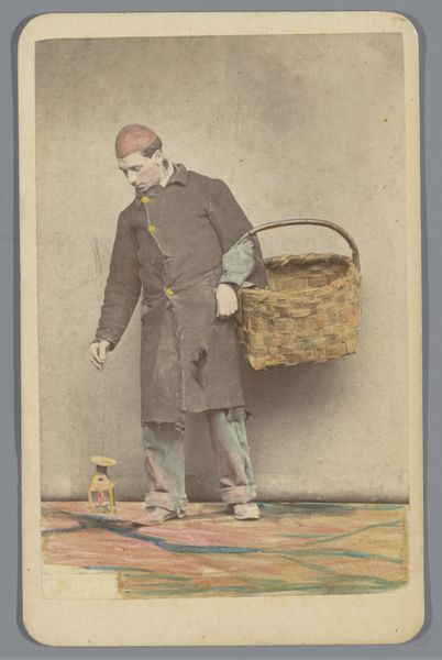 Curator: Here we have "Man met bepakte ezel, Italië", or "Man with Packed Donkey, Italy," a photograph created sometime between 1865 and 1888 by Giorgio Sommer. It’s an albumen print, currently residing here at the Rijksmuseum. What’s your immediate impression? Editor: It's… pastoral. In that melancholic, slightly romantic way. The soft sepia tones give it an otherworldly quality, like a memory fading at the edges. Curator: Indeed. The composition, however, strikes me first. Notice how the photographer uses the packed donkey as a central mass, a compositional anchor if you will, around which the narrative unfolds. The verticality of the man, juxtaposed with the burdened, almost drooping posture of the donkey, creates a visual tension, does it not? Editor: Absolutely. The weight on the donkey—literal and metaphorical—contrasted with the man’s somewhat passive stance... it feels…unequal. I imagine life back then involved some tediousness and hardship. The photo doesn't shy away from revealing those burdens. Curator: One could delve into semiotic readings of the burdens the donkey bears: what is its meaning? Are they merely goods for trade, or symbols of a more profound toil? It is, in some senses, a very careful construct playing upon genre painting. Editor: Could be both! To me, the rough textures of the baskets strapped onto the donkey make me imagine sun-baked earth and calloused hands. The dust clinging to their clothes. Curator: The very materiality of the albumen print enhances that. It’s no glossy contemporary image. Its fibers hold history. Editor: And even that small splash of light illuminating the man’s face! His face reads… wistful? The burdens of life have obviously marked him, but he stands tall with… resignation. Is there any sign of the rebellion against social class? Curator: I am always struck by how meticulously these early photographs were constructed, and with what intent. The photograph as artifice. Editor: Agreed. And maybe it's that tension between artifice and life that makes it so compelling, all these years later. To freeze such a candid picture—what a feat. Curator: Precisely, the interplay between these contrasts enriches this image far beyond what it shows on the surface. It’s a complex narrative wrapped within a seemingly simple snapshot. Editor: Absolutely. And even in its stillness, I hear the donkey’s hooves and the whisper of the wind across an Italian landscape. A moment captured, hinting at so much more.