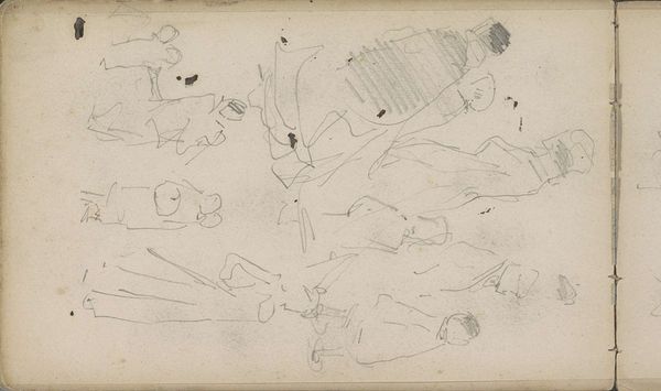 Curator: This sketch, simply titled "Waterlelies," created by Willem Cornelis Rip around 1895, seems to capture a fleeting moment in nature using primarily pencil on what appears to be laid paper. It feels very immediate. What strikes you most about this work? Editor: I’m intrigued by how such simple materials – just pencil and paper, really – can create such a delicate impression of light on water. How do you see the artist engaging with these ordinary materials to achieve this effect? Curator: Well, the pencil itself is a processed material. We might consider where Rip sourced his pencils and paper from, what that suggests about their market availability at that time and how it fits with impressionistic ideals of depicting "modern life" through a readily accessible tool. Think about the labor involved – the graphite mined, the wood processed for the pencil casing, the rags pulped to make the paper. Does seeing the finished product encourage a conversation about all those individual processes? Editor: That's a great point. It’s easy to forget all of that when we’re looking at the finished art. But the pencil, the tool itself, played a critical role, wouldn't you say? Could he have made a similar artwork with charcoal? Curator: Possibly. Charcoal would require its own unique production methods—controlling the burning of wood. But this is impressionism, which moves beyond pure representation and strives to catch the immediacy of a particular moment, with quick marks, which, in my opinion, is better achieved with a pencil as the final work feels a little more crisp and polished than with charcoal. Do you think the choice of materials reflects a democratic or an elitist aesthetic? Editor: I’d never thought of it that way before! Now I understand it's not just the finished product that's important, but all the hands and processes that contributed to its creation. It definitely gives me a new appreciation for the work. Curator: Indeed. Understanding the material conditions of art production allows us to read artworks not just as aesthetic objects, but as products of a complex social and economic system.