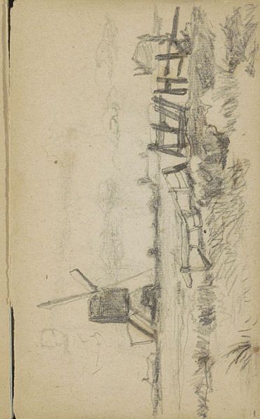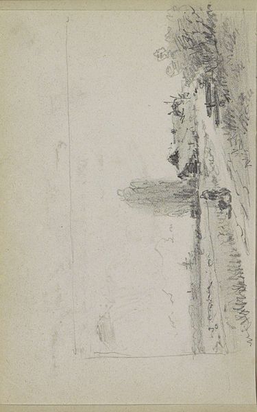 Johan Hendrik Weissenbruch created this drawing, Landschap met bomen, with pencil on paper. As an artist associated with the Hague School, Weissenbruch was part of a movement that sought a more realistic and intimate portrayal of the Dutch landscape. His work embodies the cultural shift of the late 19th century, a time when artists moved away from romanticized depictions of nature towards a more direct engagement with their environment. Weissenbruch captures the essence of the Dutch landscape, not as a grand vista, but as an immediate, personal experience. This was during a period of rapid urbanization, so his return to nature can be viewed as a reaction to the changing social and environmental landscape of the Netherlands. Although understated, the raw strokes and the texture of the paper convey a sense of immediacy, inviting viewers to connect with the scene. His landscapes evoke a sense of longing for an untouched world. This piece then, is not just a rendering of trees, but also an expression of cultural and personal identity.
