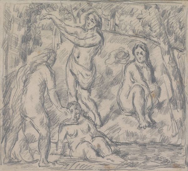 Here is John Marin's drawing, 'Movement, Fantasy Series'. Created with graphite, it captures a fleeting, dreamlike scene. Marin, working in the early 20th century, was part of a generation grappling with modernity and rapid social change. The loose, energetic lines might reflect the dynamism and uncertainty of the era. Consider how the nude figures challenge traditional representations. The seated woman exudes a quiet introspection, while the figure in motion seems to embrace a sense of liberation. The drawing reflects the complex dynamics of gender and representation, inviting us to question established norms. How might these figures represent freedom and self-expression, and what tensions might exist between them? The emotional and personal dimensions resonate, suggesting both vulnerability and strength. Ultimately, ‘Movement, Fantasy Series’ prompts us to consider how art shapes and reflects societal issues, while delving into the emotional and personal dimensions of representation.