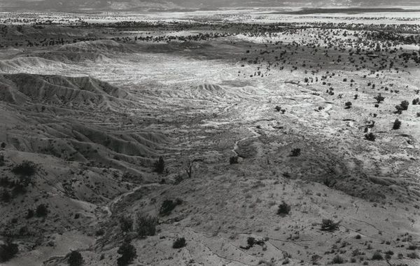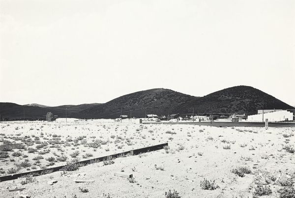 Editor: Here we have Lewis Baltz's photograph, "Between West Sidewinder Drive and State Highway 248, Looking Northwest," created in 1979. It’s a black and white image, seemingly documenting a desolate landscape. What immediately strikes me is the sheer banality of the subject matter. What do you see in this piece? Curator: That banality is key, isn't it? Baltz, working in the wake of the New Topographics movement, is deeply concerned with the transformed American landscape, specifically the impact of industrialization and suburban development. The apparent "nothingness" you observe actually points to a critical commentary on the increasing homogenization and exploitation of land. Editor: So it’s less about the beauty of nature and more about its… alteration? Curator: Precisely. Think about the title itself: it's descriptive, almost clinical, devoid of any romanticism. Baltz is documenting a specific, unremarkable location. It resists the picturesque. Where might that highway and "West Sidewinder Drive" lead? Editor: I guess to more of the same? More development, more... piles of dirt? Is he suggesting that this unremarkable scene is, in fact, typical? Curator: Exactly. It's a reflection of broader societal shifts and a critique of the pervasive human intervention reshaping the American West. This photograph isn't about escape; it's about confrontation with the everyday realities of a changing landscape. What kind of "public role" for photography is Baltz advocating? Editor: To make us see, really *see*, the consequences of our actions? This photograph seemed simple at first glance, but now it appears incredibly charged with meaning. Curator: Precisely. It is a reminder that the aesthetic value is embedded in how we choose to critically respond to these changing visual, spatial, and societal patterns. Hopefully you'll remember this lesson as you discover other artists’ perspectives.
