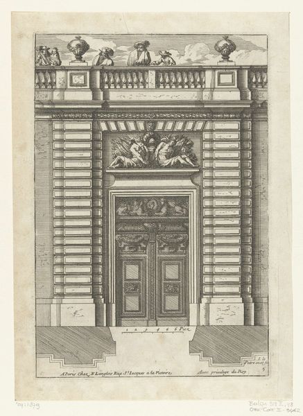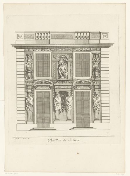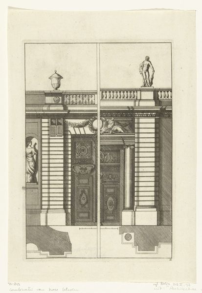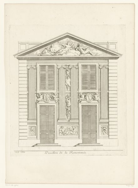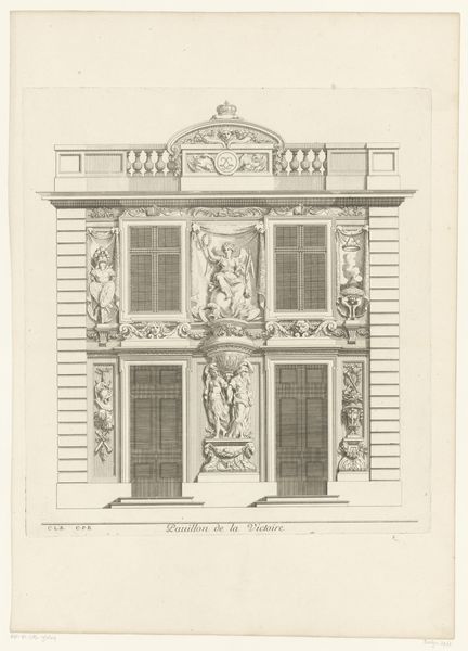 Editor: This is "Paviljoen van Apollo en Thetis" by Louis de Châtillon, created between 1672 and 1686. It's an engraving and drawing depicting, I think, a garden pavilion. I am drawn to the intricacy of the detailing, like it demands so much craftsmanship! How do we interpret this architectural print through the lens of materials and labor? Curator: Good eye noticing the craftsmanship! Looking at it materially, this engraving points us to a whole system of production. Consider the paper – where did that pulp come from? Who made it? Think also about the engraver’s tools – metal chisels, inks… All those elements had to be mined, forged, and processed. Editor: So it's less about the idealized image, and more about the network required to make it? Curator: Precisely! The Baroque period often masked the gritty realities of production behind these grand facades. These architectural renderings were a luxury good, not just in the final cost, but in terms of the labor invested. Who had the resources and social standing to commission and consume them? Was this about control? Editor: Hmmm, yes. The very *idea* of the pavilion, a leisure space for the elite, speaks to an economy that enables such extravagant creations and then to reproduce an image of that creation seems like… control? Curator: The image itself circulates as a commodity. Who could own it? Whose labour went unpaid? So many questions! These detailed drawings not only represent spaces but also a whole social order. Editor: Thinking about all the hidden hands in creating this image is pretty powerful. Curator: Absolutely, every print is not only an object of beauty but a document of its time. Editor: Right! So appreciating the social implications changes how we view art’s impact and the process of its creation.