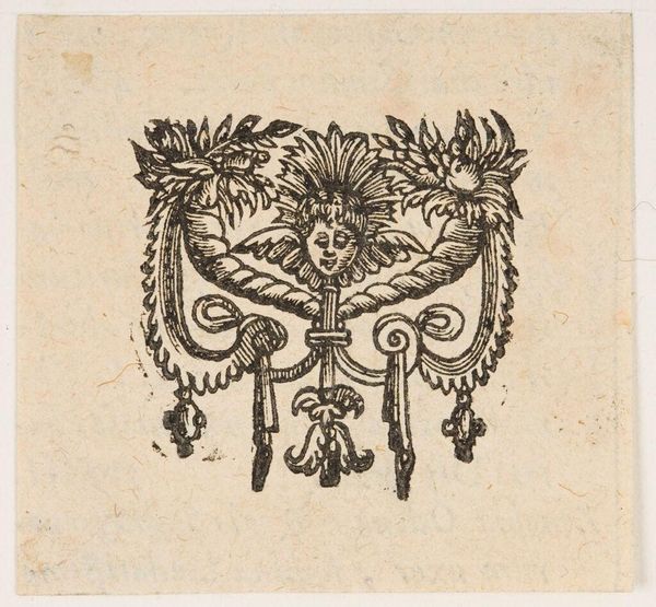 Curator: Before us we have "Textile Design for a Horse Cover," a drawing created by Baccio del Bianco sometime between 1604 and 1656. It's currently held in the collection of the Metropolitan Museum of Art. Editor: My first thought is opulent decay. The sepia tones suggest age, but the flourishes imply wealth, maybe even royalty. Curator: It’s a wonderful paradox. Consider the interplay between line and void. The artist used ink to generate dense patterns, yet they never quite coalesce. We can sense the essence of Baroque aesthetics at work here, favoring dynamism. Editor: Speaking of dynamism, the use of ink implies a specific method—engraving, perhaps. One can imagine a craftsman carefully translating this design onto a loom. I am curious about who this horse cover was intended for. What type of social and working conditions supported its realization? Was this ornamental flourish valued over practicality, over the labor needed to manufacture such lavish horse attire? Curator: Absolutely, context shapes value. From a structural perspective, notice how del Bianco uses a mirrored symmetry to create balance but it also creates a strong sense of internal logic. This allows the eye to wander within this intricate network of botanical forms, swags, and masks without ever losing its bearings. Editor: I'd also venture that, beyond sheer aesthetic appeal, a piece like this offers an important historical window into material culture. Knowing it was destined to be on display can tell us a lot about cultural performance and ideas of luxury during this period. Curator: I agree entirely; viewing artwork via that method will surely provoke unique observations regarding process and the nature of objects as signifiers within historical ecosystems. Editor: This piece certainly bridges an artistic impulse and manual manufacturing. Curator: Indeed. There’s depth revealed when we see those dialogues play out.