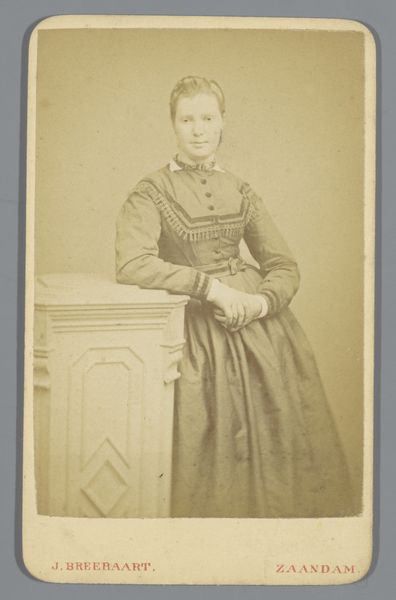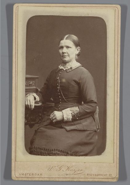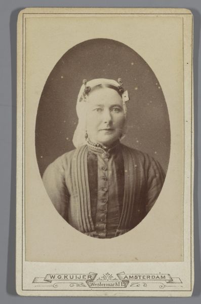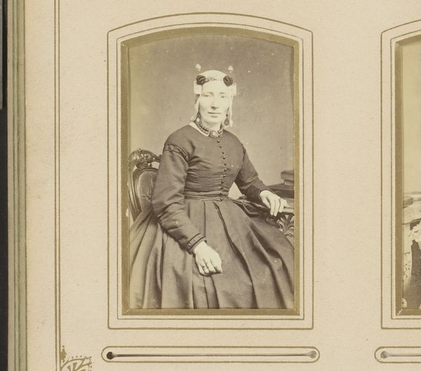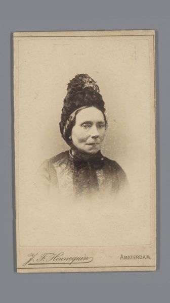 Albert Greiner created this portrait of an unknown woman with a bonnet in Amsterdam, during a time when photography was becoming increasingly accessible. This photograph speaks to the complex negotiations of identity through visual representation. The woman’s traditional bonnet and modest dress code place her within a specific cultural and social context, possibly signalling a commitment to certain values or a particular community. Yet, within the controlled setting of a photographic studio, she presents herself to a public audience, challenging conventional notions of privacy and anonymity often associated with women of her time. We might consider how her gaze—direct and self-assured—engages with or subverts the expectations of her social role. While the sitter remains unknown to us, this portrait prompts us to reflect on the ways in which individuals navigate the intersections of tradition, representation, and self-expression.
