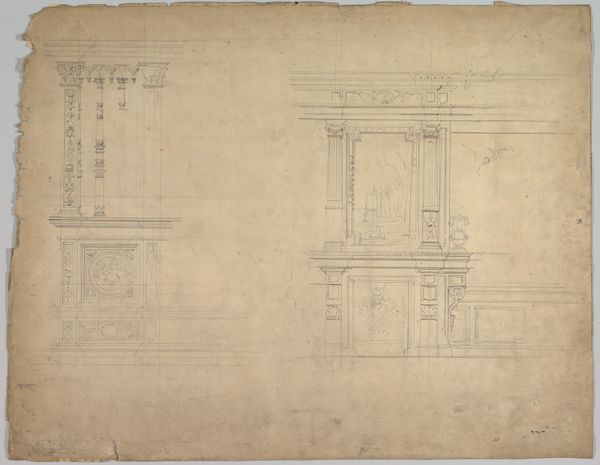 This architectural drawing, of undetermined origin, was made with graphite on paper. The qualities of graphite – its relative softness, the way it smudges and shines – lend themselves to the quick notation we see here. The architectural fragment of a coffered ceiling has been rendered with a combination of straight and curved lines, suggesting an interest in geometry and pattern. You can almost feel the artist’s hand moving across the page, mapping out the design. Drawings like this were crucial in the building trades for centuries. The production of architectural ornament was highly skilled, involving stone carvers, plasterers, and painters. It required precision, and a shared visual language. So, while this drawing may seem simple, it embodies a complex history of labor, skill, and aesthetic knowledge. It challenges any simple division between art and craft, inviting us to consider the drawing not just as an image, but as a record of a practice.