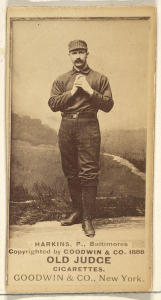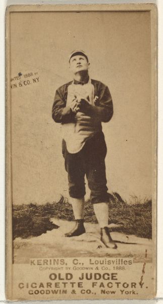 This small card, featuring Farrell of the Baltimore Orioles, was made by Goodwin & Company around 1888 as part of the Old Judge Cigarettes series. It’s made through a photographic printing process, likely albumen or gelatin silver, on paper, then mounted on card stock. What’s fascinating here is the industrial system at play. Cigarette cards like this one were early examples of mass-produced collectibles. The cards provided structural support to the cigarette packs, and also, clever marketing. The images, capturing baseball players in staged poses, created a craze that drove sales. This illustrates the connection between image-making, celebrity culture, and consumerism. Consider the labor involved: from the photographers to the printing workers, all employed to produce these ephemeral objects. While the players themselves became iconic, the cards also reflect the social context of late 19th-century America, where leisure, sport, and tobacco went hand in hand, all fueled by industrial capitalism. It really makes you think about the material culture of everyday life, and how even a small card like this connects to larger economic and social systems.