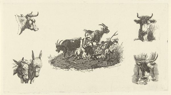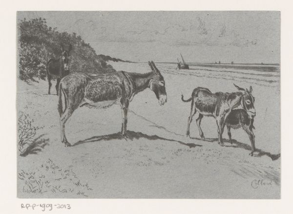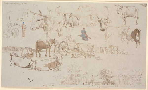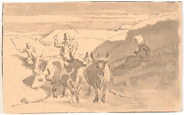 Johannes Tavenraat made this sketch, "Weiland met koeien en een boer bij een trog" or "Pasture with cows and a farmer at a trough", in the Netherlands, most likely in the mid-19th century. Its seemingly simple scene – cows grazing, a farmer resting, and a deer being chased by dogs – invites us to consider the changing social landscape of the time. In the 19th century, Dutch art began to focus on everyday life and the rural landscape. This shift reflected a growing sense of national identity and pride in the countryside, even as the Netherlands was undergoing rapid industrialization and urbanization. Tavenraat’s sketch, with its idyllic imagery, may be seen as a commentary on these social changes, offering a nostalgic view of rural life even as it faded from prominence. To truly understand this artwork, one might look into agricultural practices and land use in the 19th-century Netherlands, along with the role of landscape painting in shaping national identity. Art is never made in a vacuum, and by understanding the social and institutional forces at play, we can gain a richer appreciation of its meaning and significance.