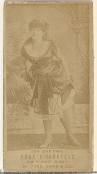 This color lithograph of a Montenegrin dancer comes from the Wm. S. Kimball & Co.’s “Dancing Girls of the World” series. The dancer’s raised hand, wrist bent elegantly, echoes gestures found in ancient Greek vase paintings, where it signified both ritual offering and the anticipation of sacred dance. Consider the echo of this motif through time, reappearing in Renaissance paintings as a symbol of grace and refined movement. It is a gesture we see again and again, a visual echo resonating through centuries, modified by each era, yet retaining its core association with beauty and poise. The motif's persistence reveals a deep-seated human appreciation for rhythmic expression. This simple gesture, laden with historical and cultural weight, evokes a sense of shared humanity and cultural memory. It is a reminder that art transcends temporal boundaries, connecting us to past traditions. The past is never truly gone but subtly reshaped and endlessly re-presented.