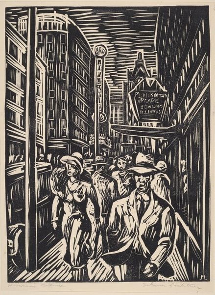 This woodcut, 'After the Accident,' was made by Louis Cardinaals in 1931. What strikes me first is the all-overness of it, the way the forms are packed so densely across the surface. It gives a sense of urgency, like everyone is trying to get a look. Cardinaals' process is so clear here; you can see the marks of the gouge cutting through the block, the places where he's dug deep and where he's just skimmed the surface. Look at the plumes of smoke billowing above the buildings. Those twisting, graphic lines remind me a little of the woodcuts of Edvard Munch, that same dark energy. They feel chaotic, dangerous, but also sort of thrilling. It’s not about clean lines or perfect representation. It's about texture and drama and capturing a moment. It's that roughness that gives the piece its power. Thinking about other artists who capture that particular sense of drama and chaos, I'm reminded of Käthe Kollwitz. Art is always in conversation, right?