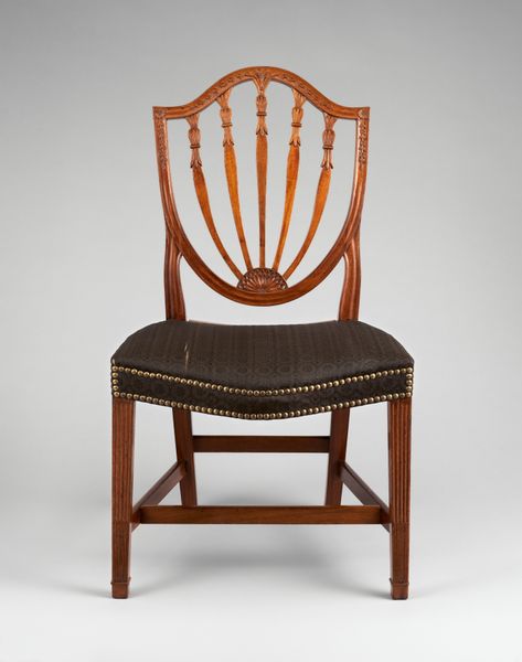 This chair was made by James Wyatt in England, sometime in the late 18th century, using mahogany and leather. Wyatt was better known for his architecture, yet he also designed furniture and furnishings. The delicacy of the chair reflects the prevailing taste for neoclassical design. Motifs such as the honeysuckle, the fluted legs and rosette details are all drawn from classical sources. But such refinement was only available to a small section of British society. The mahogany from which the chair is made, for example, was a luxury import, the product of colonial trade and, of course, slave labor. The chair would likely have sat within a grand, expensively decorated interior, acting as a signifier of the owner’s wealth, taste, and social status. By looking at design drawings, trade records, and inventories, we can begin to understand the complex social and economic conditions that made such objects possible.
