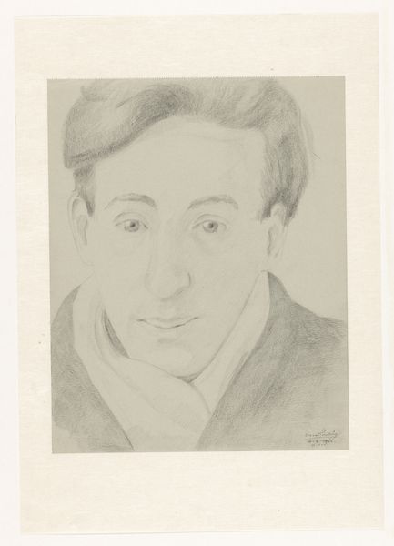 Cor van Teeseling made this self-portrait in pencil on paper on January 11th of an unknown year. Van Teeseling, born in 1915, died at only 27 years old. As a young man in the Netherlands during the rise of fascism, his identity was undoubtedly shaped by the looming shadow of war. This self-portrait offers a glimpse into his inner world. The delicate pencil lines capture a face that is both youthful and contemplative. His eyes, rendered with particular care, meet the viewer's gaze with an intensity that hints at a deep self-awareness. The details of his clothing, a simple collar and tie, suggest a striving for respectability, perhaps a desire to present himself in a certain light to the world. Yet, there is also a vulnerability in the sketchiness of the lines, as if the portrait is not quite finished, not yet fully formed. What does it mean to make a self-portrait during times of upheaval? How do we perform identity?