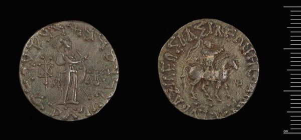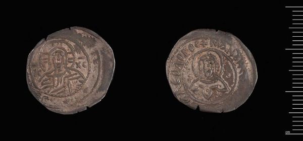 Editor: Here we have the Half-Stavraton of Manuel II, a fascinating coin from Harvard Art Museums. It feels incredibly tactile. What can you tell me about it? Curator: Consider the coin's silver content and how it reflects the Byzantine economy under Manuel II. The debasement of currency speaks volumes about resource management during a period of political decline. Editor: So the material itself tells a story of the society? Curator: Precisely! The coin isn't just currency; it's a material record of fiscal policy and craft production, reflecting power relations of the era. What do you make of the images stamped on either side? Editor: It shows the labor involved and its purpose within a much larger economic structure. Thanks for shedding light on that! Curator: Indeed, examining its materiality allows us to understand broader social and historical contexts.