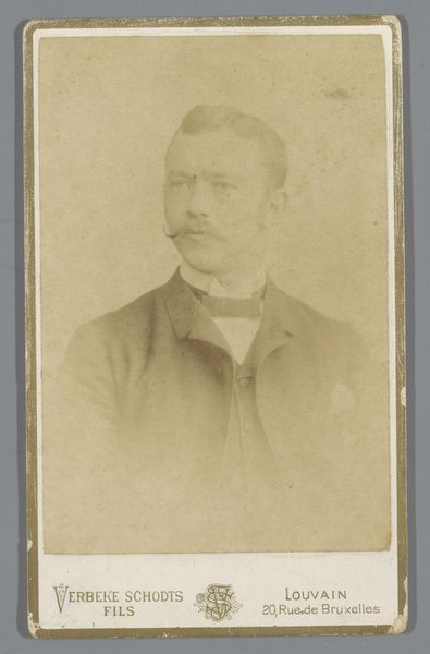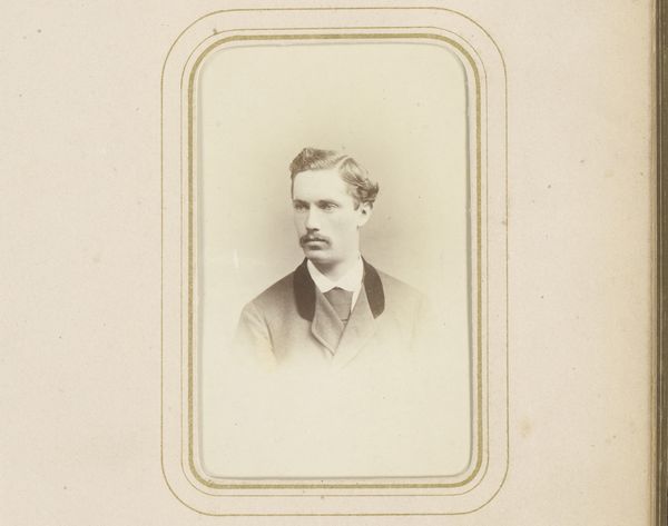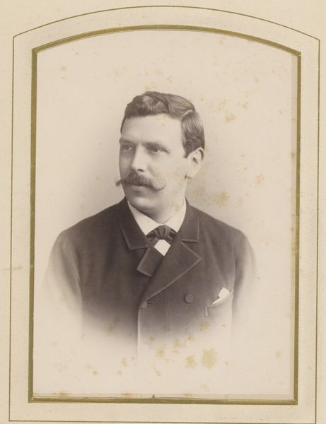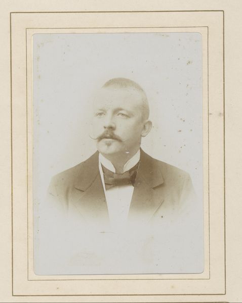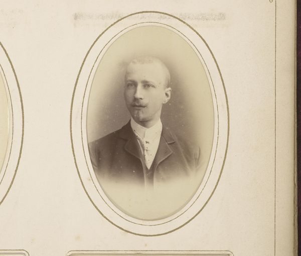 Curator: This is "Portret van een man," or "Portrait of a Man" by Harry John Dalby, created sometime between 1897 and 1901. It's a gelatin silver print, showcasing the style known as pictorialism. Editor: My immediate impression is one of serene formality. The subdued tonal range and soft focus lend it a kind of nostalgic dignity. Curator: Precisely. Dalby was clearly influenced by pictorialism's aims: elevating photography to the level of fine art by manipulating the image during development to emulate painting. Note how the soft focus nearly dissolves the background, drawing all attention to the subject's profile. Editor: I also detect a strategic placement of the man's face to occupy the upper space which creates a sort of symbolic hierarchy within the picture's arrangement, wouldn't you say? Perhaps suggesting social class or aspiration during that historical context? Curator: I see your point; however, that interpretation neglects the careful play of light and shadow, and its contributions to the visual texture. It’s an example of art for art's sake. To interpret social hierarchies into what could very well be artistic arrangements may prove an invalid thesis. Editor: Still, to ignore that photographs, especially portraits of this period, served specific social functions seems naive. The way one presented oneself, the careful attention to dress and bearing – these were deliberate acts of self-representation in a rapidly changing society. Curator: Indeed, the sitter’s formal attire – the jacket, the tie – signifies a certain social standing, yet the artistic composition transcends the sitter's mere identity, to become a study of form. We are asked to engage not with "who," but with "how." Editor: But even the ‘how’ is indicative of cultural norms and aesthetic preferences, wouldn't you concede? These conventions around how one should pose, the stylistic trends, even the artistic preference are always produced by society and cultural conditions. Curator: Perhaps, but that's where we differ in our lenses. For me, this photograph presents as an achievement in visual expression. The soft gradation and compositional balance precede your socio-cultural narratives. Editor: Maybe so. But I appreciate understanding how an image, so formally constructed, functioned within and reflected the specific cultural milieu of its time. Curator: And I admire how such a work uses subtle arrangements to generate pure artistic beauty through the image itself. Editor: Ultimately, both perspectives offer a richer understanding of Dalby’s evocative portrait.