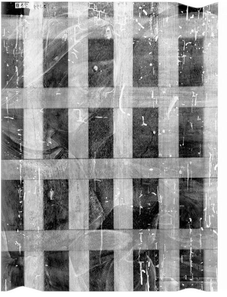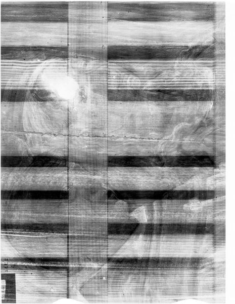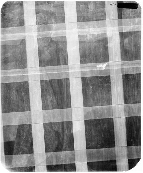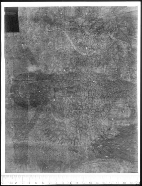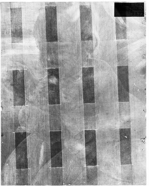 Editor: Here we have an X-radiograph of "Scene from the Infancy of a Saint," by Alesso Baldovinetti. It's ghostly, like a memory. What can you tell me about how we interpret this hidden view? Curator: An X-ray reveals the underlayers, the artist's process, the changes made. What do these alterations suggest about the evolution of the scene's narrative or symbolic content? Editor: So it's not just about what we see, but the story of its creation? Curator: Precisely. It's about the cultural memory embedded in the layers and how the artist reshaped the visual narrative, and, by extension, its cultural impact. What stays, what's removed – it all speaks. Editor: That's fascinating. It gives me a new appreciation for the hidden stories within a work of art. Curator: Indeed, it invites us to consider the dynamic relationship between intention, execution, and lasting cultural resonance.