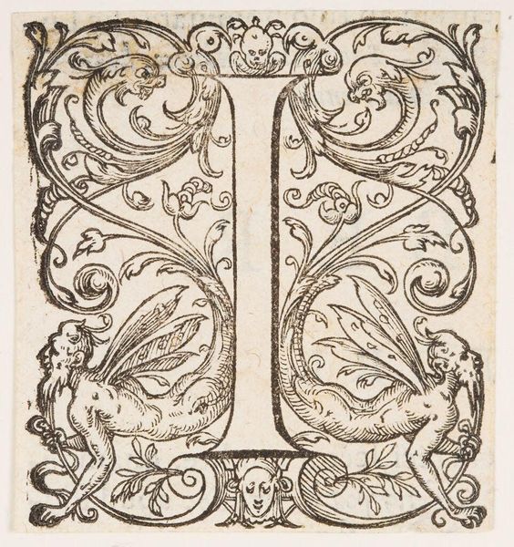 Editor: This intriguing print, titled "Letter H" by an anonymous artist, features strong symbolic imagery. What is your interpretation of the visual language at play here? Curator: The crown and fleur-de-lis suggest themes of royalty and authority, perhaps representing a particular dynasty. The letter itself becomes a vessel for conveying power and heritage. Notice how the floral elements soften the rigid form, imbuing it with a sense of cultivated grace. Editor: That's fascinating, I didn't consider the softening aspect. Thanks for sharing your insights! Curator: My pleasure; considering how symbols evolve helps us understand our cultural memory.