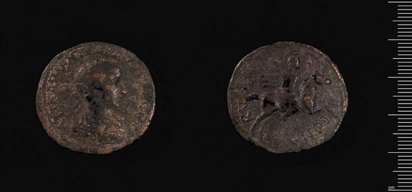 Curator: Before us is an artifact attributed to Caracalla, titled "As of Caracalla," presently held in the Harvard Art Museums. Editor: The immediate impression is one of age and wear. The corrosion adds a layer of complexity to the surface. Curator: Indeed, the patina speaks volumes about its history. The coin, though simple in form, presents us with dual aspects: the profile of the emperor and the markings on its reverse. Editor: I'm struck by how these visual emblems become intertwined with political narratives, how they transmit power and legitimacy through time, and the fact that the symbols remain legible, despite the corrosion. Curator: The image is degraded, yet the underlying structure persists. Consider the incuse lines of the portrait, and the effort it took to render these features in miniature. Editor: It’s fascinating to consider how this small object once moved within Caracalla’s empire, carrying with it not just economic value but also the weight of imperial authority. Curator: Yes, a reminder that even the most utilitarian objects can be rich with semiotic meaning. Editor: Such a relic invites us to ponder the legacies we create, and how time ultimately transforms our intentions.