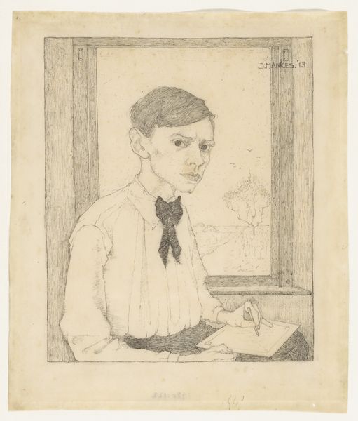 Editor: We're looking at "René de Gas," a pencil drawing from 1855 by Edgar Degas. The delicate lines give the portrait a soft, almost dreamy quality. What do you make of the subject's expression, or the way Degas has used light and shadow here? Curator: It’s more than dreamy for me, it’s like stepping into Degas’ intimate world. The slight tilt of the head, that barely-there smirk...it hints at a private joke, doesn't it? Degas wasn’t just rendering a likeness; he was capturing a fleeting moment of connection. The subtle hatching, particularly around the eyes, reveals more about the René's character than a photograph ever could. Makes you wonder what they were thinking, doesn't it? Editor: Definitely! There’s something very knowing about it. What about the rather classical composition? Is that typical for Degas, even early in his career? Curator: That’s the fascinating friction, isn’t it? The traditional pose against the modern spirit flickering in the subject's eyes. Even then, Degas was playing with conventions. This portrait exists in a transitional space—respectful of academic training, but itching to break free. It’s like he's saying, "I can paint like the masters, but watch what I do next." Does it give you any insights on how the old informs the new? Editor: I guess I hadn't fully appreciated the tension between tradition and innovation until you pointed it out. Thanks! Curator: The pleasure is all mine. Now, imagine the stories this drawing could tell if it could talk…