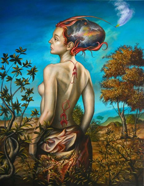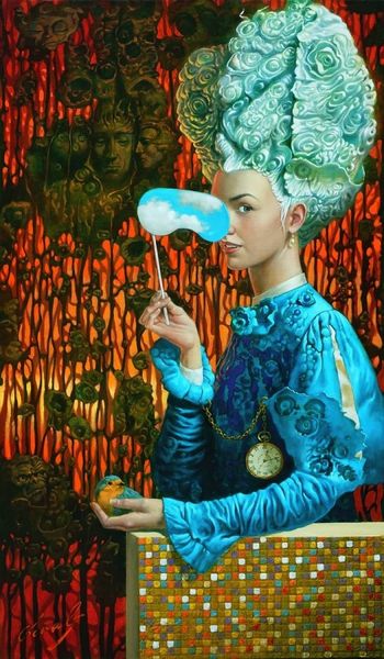 Andrey Remnev created Nero using oil on canvas and a distinct approach to both colour and form, creating a very particular mood. I'm really drawn to how Remnev handles the blue of the woman's dress, and the river behind her. The way he uses these colours feels like he's building up layers, almost like a fresco, where each stroke and shift in tone adds to the sense of depth and texture. It is this application that invites you to trace the artist's movements and choices, creating a visual record of his painting process. It reminds me a little of Balthus, in its stillness and sense of mystery, but also hints at something more contemporary in it's simplified form, an ongoing conversation across time. Art embraces ambiguity, and this piece is no exception.