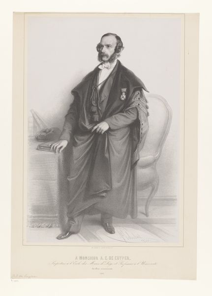 This is Joseph Schubert’s portrait of André Dumont, rendered in a monochromatic palette with remarkable detail, now residing in the Rijksmuseum. Notice how the artist employed lithography to give a formal depiction of André Dumont. The composition creates a formal equilibrium, as it captures Dumont in a poised stance, with garments and adornments suggesting prestige. The use of chiaroscuro, transitioning from light to shadow, highlights the subject's features and the textures of his attire. This contrast not only adds depth but also subtly directs the viewer's attention to the subject's face. Furthermore, the lithographic technique gives an opportunity to reflect on the changing nature of representation in the 19th century. This portrait of André Dumont serves as an artifact and a reflection on cultural values, and the transition from traditional artistic methods to the rise of new technologies like lithography.