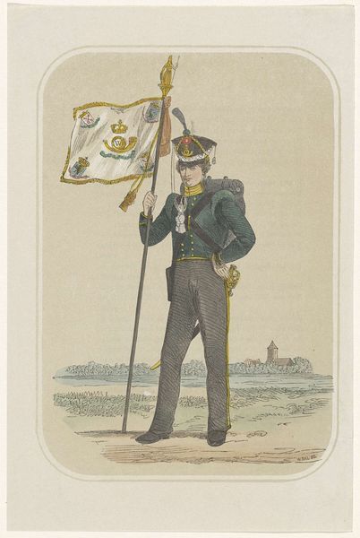 This watercolor, made in 1787 by an anonymous artist, depicts a standard-bearer of the Civic Guard in Amsterdam. Note the flag held high: within a laurel wreath, we see a bundle of arrows, bound together, signifying unity and strength. This motif has ancient roots; think of the Roman fasces, a bundle of rods and an axe, symbolizing power and authority. But here, the arrows represent the collective strength of the citizenry, a concept that echoes through time, resurfacing in various forms of civic and national symbolism. The laurel wreath, an emblem of victory and honor since antiquity, adds another layer. It brings to mind images of emperors and heroes, subtly linking the civic guard to a lineage of leadership and triumph. The image, therefore, engages us on a deep level, stirring our collective memory and reminding us of the timeless human desire for unity and strength, a powerful force that transcends historical contexts.