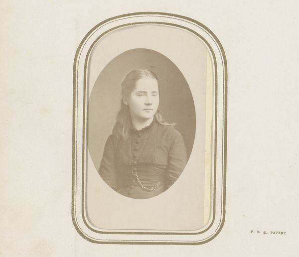 This is a portrait of a young woman with glasses, made by Machiel Hendricus Laddé, using photography. Photography in the 19th century was a relatively new medium and involved a complex chemical process. Each image required careful preparation of the light-sensitive materials, precise timing during exposure, and skilled development techniques to reveal the final picture. The sepia tone of this print, achieved through chemical treatments, would have been a popular aesthetic choice. The mount around the photograph is also significant. These mounts, often mass-produced with decorative borders, framed the image and elevated it to an object of display and commerce. This portrait offers a glimpse into the democratization of image-making. Compared to painted portraits, which were exclusive to the wealthy, photographic portraits made it possible for a wider range of people to document their likeness and participate in visual culture. It is an early instance of the kind of image saturation we live with today. Looking closely at the materials and processes behind this photograph allows us to appreciate how technology transformed artistic expression, and to consider its broader implications for society.
