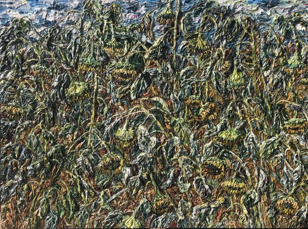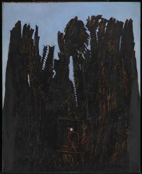 Editor: Ivan Albright's "The Rustlers" from 1962 is a deeply textured oil painting that also incorporates assemblage. I’m immediately struck by how claustrophobic it feels. It’s hard to distinguish any clear forms amidst the density. What historical perspectives can help us unpack this unusual piece? Curator: Considering Albright’s involvement with the Chicago Imagists, we can see “The Rustlers” as part of a larger movement questioning artistic conventions and embracing the grotesque. How do you think the social climate of the early 60s influenced such imagery? Did Cold War anxieties play a part? Editor: That makes sense, given the unsettling atmosphere. The palpable decay definitely hints at a broader cultural anxiety. It's hard to ignore how his matter painting and assemblage moves "realism" into a gritty depiction of real-world deterioration and social and psychological corruption. Curator: Precisely. This period witnessed increasing anxieties surrounding industrialization and its effect on humanity. Note how Albright used those impasto applications. The heavy layers almost act as a metaphor for societal burdens or perhaps suppressed psychological states. Do you see the influence of Abstract Expressionism here as well? Editor: Now that you mention it, yes. The dense composition and reliance on texture definitely echo the expressive surfaces found in Abstract Expressionism, even as the artwork diverges into an expressionist figurative representation. The difference is, however, that it seems far more deliberate in its symbolic form than something purely abstract would be. It moves expressionism from interior gesture, to external statement. Curator: The piece indeed embodies social commentary. Considering that his paintings like Picture of Dorian Gray were used in Hollywood productions, what statements might "The Rustlers" make on art's role and image manipulation? Editor: It feels like an aggressive rejection of Hollywood’s often idealized portrayals of reality. I see now how Albright uses decay to critique the deceptive facades in society. Thank you! Curator: I agree! It certainly leaves us pondering the uncomfortable realities we often try to ignore. It's interesting how art like this holds up a mirror to our fears, prompting critical self-reflection on societal and personal vulnerabilities.