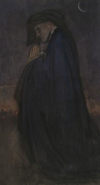 Fernand Khnopff made this painting, Incens, using oil on canvas, during the Symbolist movement. The smooth brushwork and subdued palette give the entire scene an ethereal quality. Yet, the real skill on display here is Khnopff's attention to the textures of the fabrics, particularly the figure’s elaborate garment. The patterns on the cloth appear to be embroidered, which would have been an extremely time-consuming process, involving a high degree of skill and artistry. Consider also the labor needed to make the fabric itself. It would likely have been woven on a loom, then dyed and finished. Khnopff’s sensitivity to the labor involved in producing these beautiful textiles is quite remarkable. He makes us aware of the distance between his studio practice as a ‘fine artist’ and those everyday traditions of making. In doing so, Khnopff asks us to consider the value of all creative practices, bridging the gap between art and craft.