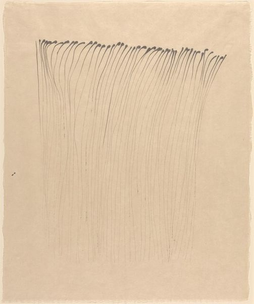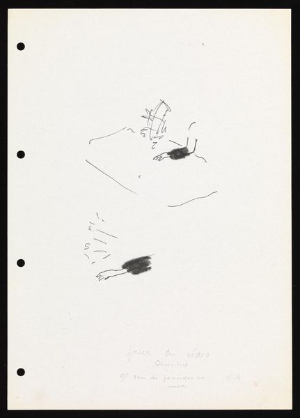 Curator: Let's turn our attention to "Sublimation," a drawing by Louise Bourgeois created in 2002 using ink on paper. I’m fascinated by the textual and the figurative, in how they share space on this page. Editor: My immediate reaction is one of tension, perhaps even unease. The stark contrast of the heavy black form juxtaposed with the delicate, almost ethereal lines of the pink arms creates a visual push and pull that is disturbing. Curator: I appreciate your perspective. It reminds us that Bourgeois's work, while aesthetically striking, often grapples with challenging emotional states. Consider the title. Sublimation, in a psychoanalytic context, suggests channeling base emotions into something socially acceptable. Given Bourgeois' well-documented explorations of trauma, might this work explore such a process? Editor: I absolutely agree. I’m also struck by how the written words feel intrinsically linked to the imagery. "He kept alive...and started cleaning… at that point something broke inside me.” The text evokes domesticity gone wrong, hinting at repressed feelings. What do you make of the musical notes alongside the arm gesture? Curator: Ah, good eye! I see them as Bourgeois emphasizing rhythm and harmony that underscores that text is almost performative—maybe connected with a dramatic narrative around these social conditions. What also gets me is Bourgeois making us consider the political realities of domestic expectations and women's assigned role within. Editor: Indeed. In placing personal experience alongside political critique, Bourgeois provides space to connect art history, psychology, feminism, and lived experience. Her abstraction makes this both specific and deeply personal and broadly resonant. Curator: By weaving text and image, Bourgeois prompts us to consider the interplay between external and internal landscapes, social expectation, personal expression. Editor: Precisely, and the lasting power of "Sublimation" lies in its ability to invite continuous reflections on this interconnectedness. It shows, yet again, the power in examining the space between.