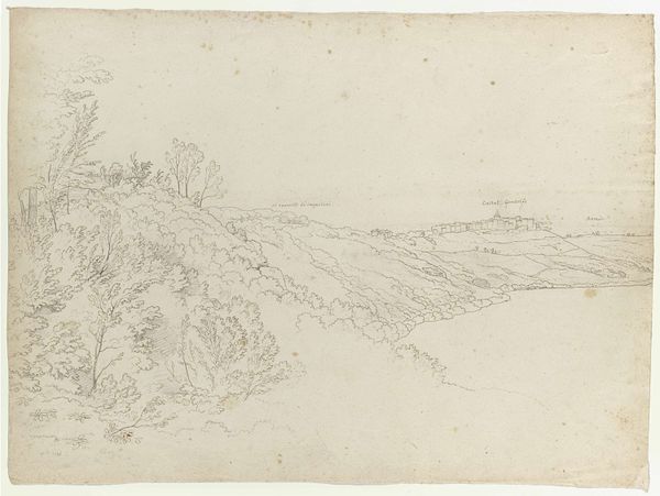 This subtle pencil drawing titled "Italian Landscape" was created by Friedrich Metz. During the 19th century, there was a surge in the popularity of landscape art, fueled by the Romantic movement's emphasis on nature as a source of spiritual and aesthetic experience. Artists often traveled to Italy, drawn by its rich history, classical ruins, and picturesque landscapes. The light in Italy with its sun-drenched hillsides became synonymous with a sort of nostalgic longing. While we don't know Metz's personal intentions, we can imagine the cultural milieu in which he worked. How does he express the feeling of being immersed in a place? Does the softness of the pencil marks evoke a sense of calm contemplation? Or perhaps this dreamlike landscape transports us to a timeless space, inviting us to reflect on our own connection to the natural world.