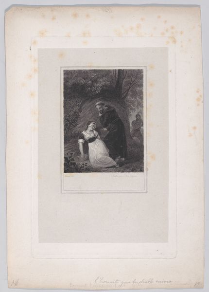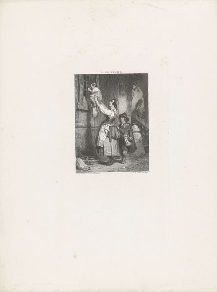 Here is an etching of a girl holding a crying toddler made by Frans Lauwers. The composition is vertically oriented and divided into two distinct zones by tonal contrast. A foreground featuring the figures is detailed, while the background is darker and more loosely defined. This sharp contrast emphasizes the emotional intensity of the human interaction at its center. Lauwers uses dense, cross-hatched lines to model the forms, creating a rich texture that draws the viewer's eye to the faces of the girl and the crying toddler. The girl's downward glance towards the child, juxtaposed with the toddler’s tearful expression, forms a narrative axis in the artwork. It reveals a moment of comfort and distress. The formal elements here are not merely descriptive, but are essential components of a narrative that explores themes of care and emotional complexity. This intimate, domestic scene is charged with both tenderness and tension, inviting us to contemplate the layers of meaning embedded in everyday interactions.