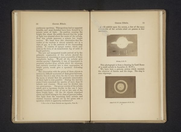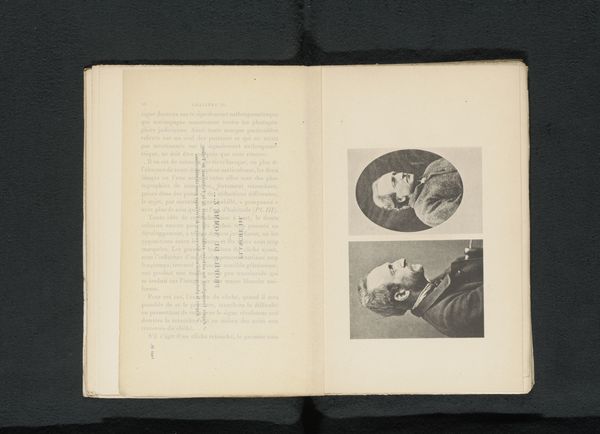 Curator: This open book displays a photomontage entitled "Koffer met daarboven de tekst Express Detective Nadar," or "Suitcase with the text Express Detective Nadar Above," attributed to Nadar, created before 1893. It's a photographic print now held at the Rijksmuseum. The print on the page features an image of a suitcase centered within emanating light rays. It strikes me as incredibly whimsical. What do you think? Editor: I find it interesting how the text becomes part of the art itself, literally built on top of the suitcase image. The combination is humorous, playing on anxieties about surveillance and detection through new technology like photography. Curator: Right, the suitcase as a metaphor becomes laden with implications, not merely for travel, but as a carrier of secrets, perhaps illicit ones considering Nadar’s cultural position. It certainly speaks to a broader narrative about identity and surveillance during that era. Editor: I agree, consider also the rising prominence of the middle class, and an emerging popular appetite for narratives about detective work that romanticize ideas of power, danger, and the unraveling of truth—all through these new systems of social and scientific control. How do such institutions intersect? The suitcase suggests they all condense into this everyday, utilitarian form. Curator: Exactly. Looking closer, the radiant beams around the suitcase remind me of halos in religious iconography, perhaps imbuing it with a sense of importance. Even in the 19th century there were efforts to depict capitalism itself as a religion or system of power, and Nadar seems aware of the symbolic potential. Editor: That's an astute reading, it makes one wonder about the role that this image might have played within print culture—did this image invite commentary or did it act as one itself? Were popular sentiments of the time already turning cynical about these innovations, casting suspicion on the "progress" they promised? Curator: Definitely, considering Nadar’s active involvement with social critique and satirical magazines, I'm tempted to frame this piece within a broader cultural context, viewing it not just as a singular object, but a voice contributing to that growing discussion. Editor: A fitting reminder, perhaps, that even seemingly straightforward imagery contains complex narratives awaiting exploration. Curator: Precisely, artwork like this compels us to reassess the perceived neutrality of visual representation and re-examine those embedded cultural biases.