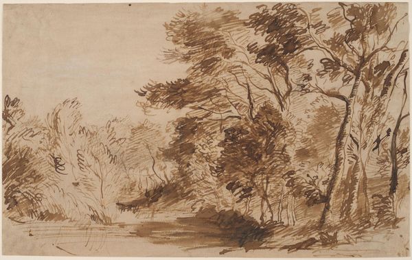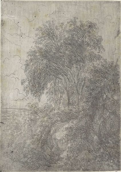 This is Arnoud Schaepkens' drawing of a landscape with a vegetated hill. With sparse and delicate lines, the artist constructs a scene where nature dominates. The monochromatic palette invites us to focus on the textures and forms. The hill, densely covered with vegetation, occupies the right side, creating a sense of depth and leading the eye into the composition. Schaepkens masterfully uses line variation, from the light feathery touches in the sky to the more defined strokes describing the foliage. This technique creates a dynamic interplay between light and shadow, and suggests the atmospheric perspective. The drawing is not just a representation of a landscape; it is an exploration of the artist's perception. It invites us to consider the role of drawing as a mode of inquiry. The open-endedness of the composition leaves room for interpretation, reminding us that art is not about fixed meanings but about engaging in a visual dialogue.