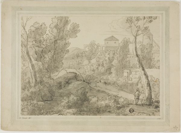 Editor: Here we have, "Farm with a haystack," dating roughly from 1650 to 1700, attributed to an anonymous artist, done with pencil and perhaps a wash on toned paper. The scene is peaceful, bucolic. What do you see when you look at this drawing? Curator: I see a document of labor and materiality. Consider the paper itself – likely hand-laid, and then toned, perhaps deliberately, or aged over time. Look at the sketch. Notice how the artist depicts the haystack. How long would it take to construct it? And what kind of labor is represented here? It suggests a whole system of agricultural production and the community built around that. Editor: That's fascinating. I was mostly looking at it as a simple landscape, but now I see how much work went into it. Is there something about the materials themselves that speak to the historical period? Curator: Absolutely. The ready availability of paper, the subtle variations of pencil lead at the time; consider the access the artist had to these tools, and to the scene depicted. Who could afford such things? And who had the leisure time to observe and sketch it? These details speak volumes about the social and economic landscape of the time. Also, why sketch this particular subject? Who was his intended audience? Was he creating the piece for someone who might purchase it as decor? Editor: It's amazing to think about all the layers embedded in this seemingly simple sketch. It moves beyond just a pretty picture. Curator: Exactly. It's not just about aesthetic beauty but also the historical conditions of its making and the material culture it reflects. The way he used the paper, pencil and time is all deeply meaningful, reflecting both labor and land ownership of that period. Editor: I'll definitely look at sketches differently from now on. Thanks for sharing your perspective! Curator: My pleasure. Looking at art through the lens of materials and production opens up new avenues for understanding its cultural and historical significance.