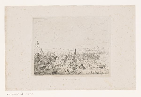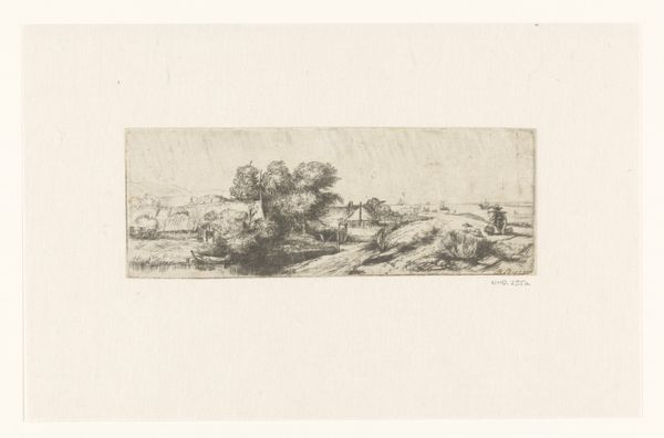 Claude Henri Watelet created this etching, titled "Landscape with a cow drinking," in France, during the 18th century. It's a pastoral scene showing an idyllic view of the countryside. The image presents a romanticized view of rural life that was popular among the French aristocracy. The presence of a cow drinking, a humble activity, is set against the backdrop of what appears to be a fortified structure atop a hill, potentially commenting on the relationship between the working class and the upper class during that period. This was a period of growing social and political unrest in France, leading up to the French Revolution. To fully appreciate this artwork, consider the context in which it was created. Research into the artist's life, the artistic conventions of the time, and the social and political climate of 18th-century France could provide valuable insights. By exploring these avenues, we can deepen our understanding of the complex meanings embedded in this seemingly simple landscape.