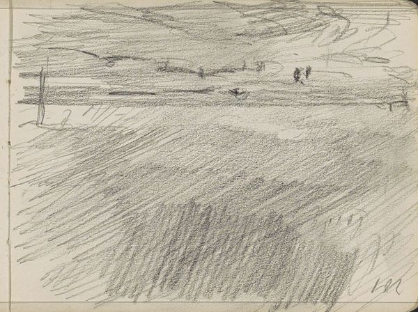 Ladislav Mednyánszky's, Landscape with a Lake, seems to have been made using pencil and watercolor on paper. Look at the loose, almost scribbled marks that build up the sky and the water. There's a real sense of immediacy here, like Mednyánszky was trying to capture a fleeting moment. The colors are muted, mostly earthy tones, with touches of green and brown. The paper peeks through in places, adding to the sense of lightness. I love the way he's used horizontal lines to create the impression of a vast, open space. There’s one dark, almost jagged mark in the top left corner – it could be a cloud, or a shadow, but it adds a sense of drama to the piece. You can see echoes of the Barbizon school in his work, and maybe even a hint of Whistler. It's a reminder that art is always a conversation, a back-and-forth between artists across time.