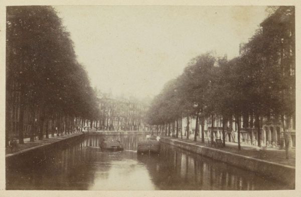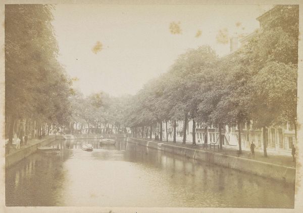 Andries Jager made this small photograph of the Prinsessegracht in The Hague using the albumen print process. This technique, popular in the mid-19th century, involved coating paper with egg white and silver nitrate, creating a surface sensitive to light. The material qualities of albumen prints give them a distinctive look. The image appears soft and warm, with a subtle sheen that enhances the details of the architecture and foliage. This tonality results from the developing process, as the silver particles react to light, creating depth and luminosity. Photography emerged alongside industrialization, and it offered new ways to document the changing world, and this one highlights the artist's engagement with modernity, by using a chemical process that captured the world with unprecedented accuracy and detail. Understanding the materials and methods used allows us to appreciate the photograph not only as a representation of a scene, but as an object shaped by its own making.