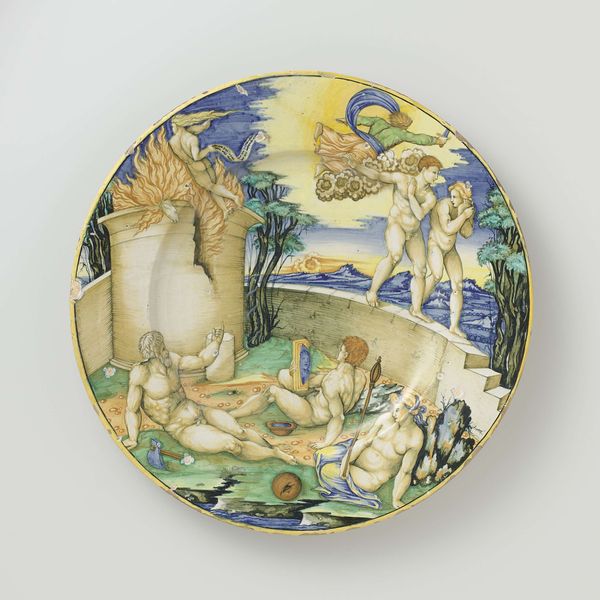 Editor: So, here we have *The Triumph of Eternity*, a tempera painting from around 1530-1540. It's anonymous, located in the Rijksmuseum. It has this incredible swirling composition, full of figures, almost claustrophobic. What’s your take on a piece like this? Curator: It strikes me as deeply entrenched in the political climate of the 16th century, specifically regarding the Catholic Church's stance on power and eternity. The painting is likely meant for the cultural elite and is promoting their position of the dominance. Considering Mannerism, think about the highly stylized figures – elongated limbs, dramatic poses. What's the function of that style here, do you think? Editor: Well, maybe it's glorifying the subjects? Giving them a sort of elevated, otherworldly feel that speaks to the 'eternity' of the title. But the scene is quite busy; does that fit with the theme? Curator: Exactly. Now, consider the concept of *memento mori*, a reminder of mortality. We have an image showing damnation in parallel with salvation. The painting places earthly power as secondary. Do you think an audience member in the 1530s, for instance, would consider this an expression of support or defiance to temporal power? Editor: Possibly both, depending on who commissioned it! There’s almost a subversive element because you can focus on hell if you wanted to. It acknowledges both sides. It definitely creates an important, complex viewing experience. Curator: And how that reflects the society from which this work comes from, it certainly adds another level of understanding, as well. Seeing art as inherently tied to societal, political currents adds a new depth. Editor: I agree! Looking at this work through that lens, its message is much richer and really forces one to consider what statements artists made with their paintings, sculptures and architecture.