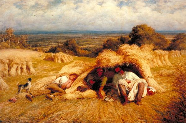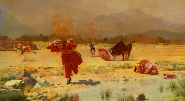 Jose Malhoa, sometime in the late 19th century, decided to show us what “Tickling” looks like with oil on canvas. The texture here is really something – look at how the paint seems to mimic the rough, dry feel of the wheat. There's a real sense of physicality, like you could reach out and feel the scratchy straw. And the light! It’s not just about showing us the scene, but also about the heat, the golden haze of a summer day. I’m drawn to the way the artist renders the woman's hand, reaching up in mock defense, it's painted with such loose energy that it feels like it's about to move! It’s this kind of lively mark-making that brings the whole scene alive. It reminds me of Courbet, in the way he found beauty in the everyday, but with a touch of playful humor.
