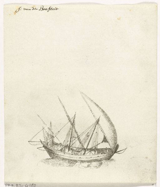 Luca Carlevarijs rendered this drawing, "Ship with Two Masts," using pen and brown ink, likely during the late 17th or early 18th century. Carlevarijs, a Venetian painter and etcher, came of age during a time when Venice was transforming into a popular destination on the Grand Tour. His detailed vedute, or views, catered to wealthy Europeans eager to bring home souvenirs of their travels. However, this drawing is not a formal commission, but seems to be a more informal, personal work. It is in these types of pieces that we can grasp the artist’s understanding of maritime culture and the global economy of the time. The ship, rendered with delicate lines, becomes a vessel for our imagination, evoking the experiences of sailors, merchants, and perhaps even enslaved peoples traversing the seas. Venice, a city built on trade, was also deeply implicated in the darker aspects of maritime history. Carlevarijs’s drawing invites us to consider these complex histories, reflecting on how personal artistic expression and historical narratives intertwine.