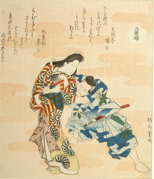 Editor: Here we have Yashima Gakutei's "Minamoto no Yoritomo," a woodblock print. The detail in the robes is stunning, almost textile-like. What can you tell me about the process behind this? Curator: Consider the social context. Woodblock printing allowed for wider distribution, democratizing access to images of power. The labor-intensive carving and printing processes speak to a collective effort, challenging notions of singular artistic genius. Editor: So, it’s less about the individual artist and more about the system that allowed this image to be made? Curator: Precisely! We also see the consumption of luxury goods represented. How might this print function within a market economy? What does it tell us about the status of Minamoto no Yoritomo? Editor: It gives me a lot to think about regarding the materials used and how accessible this artwork could be back then. Thanks!