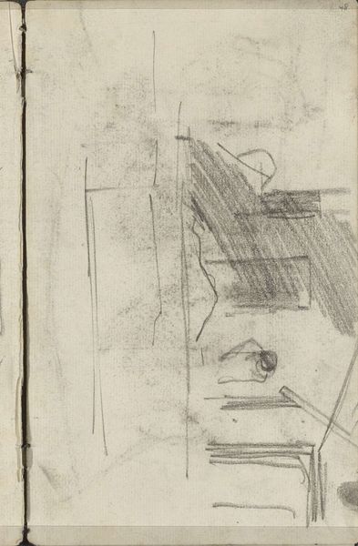 This is a pencil drawing by George Hendrik Breitner, made sometime in the late 19th or early 20th century. It seems to be an architectural study, a quick impression of a building or structure. The beauty of a drawing like this lies in its directness. Pencil on paper is about as immediate as art gets. The artist's hand, moving across the page, translating what the eye sees into a series of marks. You can almost feel Breitner's presence as he rapidly lays down these lines, capturing the essential forms with speed and efficiency. Think about the economy of means here. Just a pencil, a piece of paper, and the artist's keen observation skills. This is a far cry from the labor-intensive processes of, say, oil painting or sculpture. It's a medium that lends itself to quick studies and explorations, capturing fleeting moments and ideas. In its simplicity, it reminds us that art doesn't always require elaborate materials or complex techniques to be meaningful. It's about seeing, feeling, and translating that experience into a tangible form.