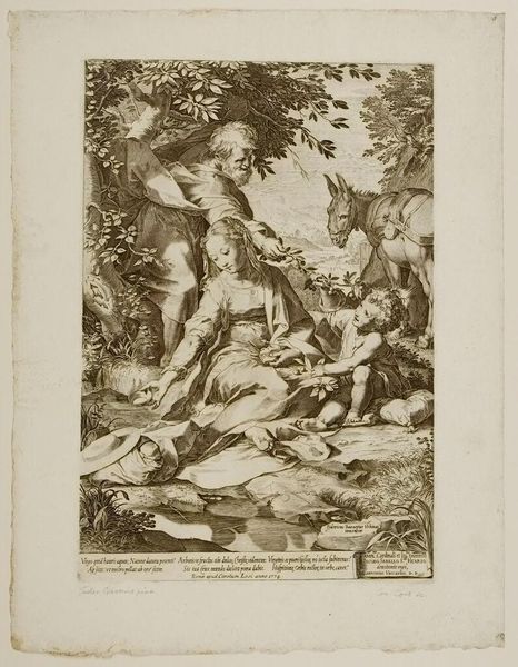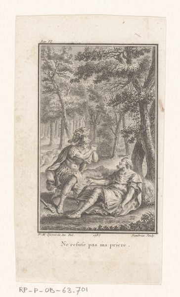 Pieter Serwouters created this print, "David verslaat de beer en de leeuw", but we don’t know exactly when. The image captures David, a young shepherd, protecting his flock, an iconic scene emphasizing courage, faith, and divine protection. During the Dutch Golden Age, when Serwouters was active, there was a profound sense of national identity intertwined with religious and moral narratives. Here, David symbolizes the virtuous protector, a fitting allegory for the Dutch Republic defending its newfound independence. Consider the cultural and religious context: the print would have resonated deeply with a society that had just fought for its freedom. David's youthful vulnerability, juxtaposed with his bravery against the wild animals, speaks to a broader theme of overcoming adversity through faith and inner strength. It suggests that anyone, regardless of their background, can rise to meet monumental challenges. The print evokes themes of faith, courage, and the triumph of the underdog.