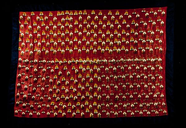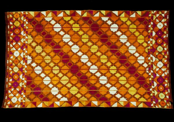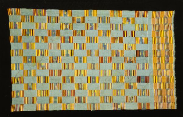 Curator: Looking at this band, one can immediately appreciate its craftsmanship and restrained palette, which blends soft greens, golds, and pale peach tones across a textured, grid-like foundation. Editor: It strikes me as possessing a certain quiet elegance. Despite the floral motifs, the geometric patterns and subtle coloring give it a subdued, almost formal, mood. Curator: Indeed. This silk and cotton band, created anonymously in the 16th or 17th century, showcases the decorative artistry of the period. It exemplifies the fashion and interior design of its time. Editor: And its dimensions? The relatively narrow and elongated form dictates that it would be viewed as a detail, a decorative element integrated into something larger. This would alter how one views the pattern. Curator: Precisely! Its placement would dictate the patterns role. Think about trimming a gown, a curtain, or even adorning an altar cloth. It becomes enmeshed with the larger context and reflects how its integration with other forms shifts the design, too. The symmetrical layout certainly facilitates repeatable usage. Editor: Note also how the weaver utilizes variations in weave density and fiber thickness. Certain segments are much finer, and some are built out in multiple layers. The textures must have shifted subtly based on lighting, material qualities and intended use. It has a definite sensuality despite its controlled nature. Curator: It serves as a great representation of baroque style’s penchant for the blending of structured elements with curvilinear forms. Here, it presents as floral arrangements encased within structured geometry. Editor: There’s also something interesting to observe about how this object made it into museum collections, which also shifts how audiences relate to such material. Textile fragments often bear the mark of their prior utility and how they transitioned away from functionality into our more 'static' art context. Curator: I concur. Its journey through time significantly reshapes our dialogue with it. Editor: Exactly. It is almost elegiacally positioned across historical usages that highlight art production but also its endurance through many shifts in design philosophies. Curator: A final reflection might note its remarkable condition given its age. The colors are very vivid and demonstrate both the expert crafting, as well as later care to maintain and appreciate its historic qualities.